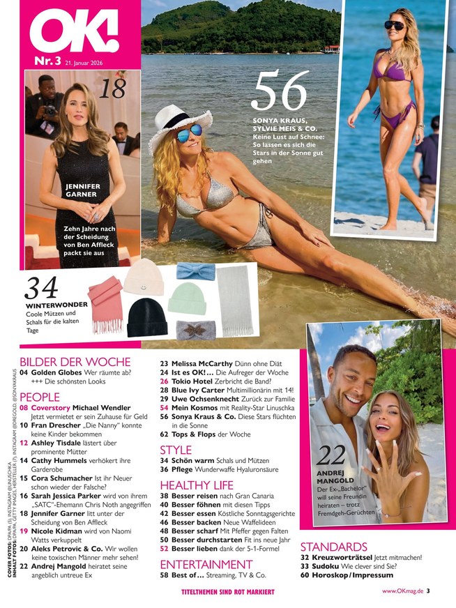 OK! ist schnell, modern, flexibel, stets aktuell und rund um die Uhr verlinkt. Das glamouröse und aufregende Leben der Stars wird zum Universum der Leserin.