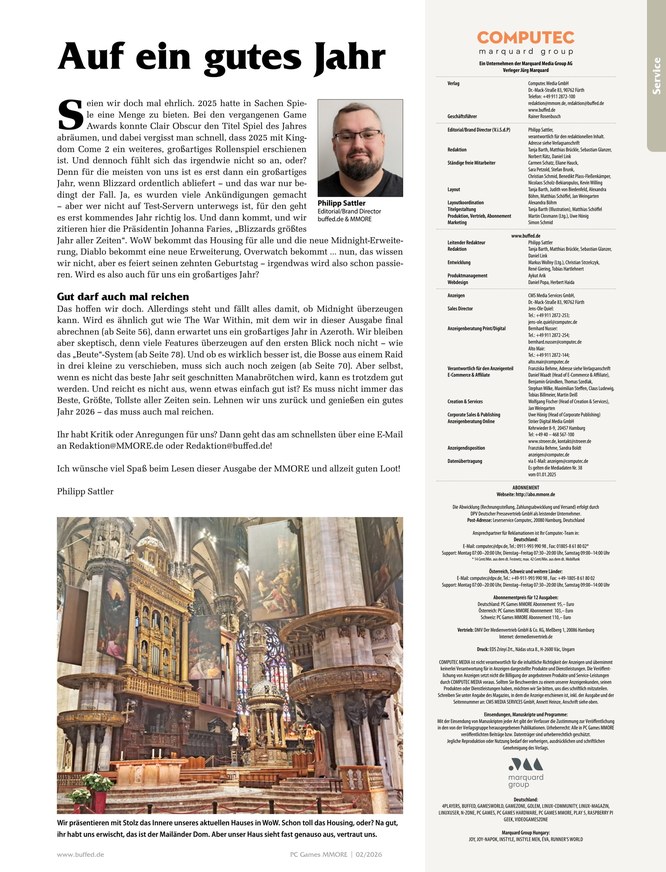 PC Games MMore ist das Kompendium für alle World of Warcraft-Enthusiasten, die sich umfassend über Instanzen, Talente, Quests und Berufe informieren wollen. Was sind die Klassen-Challenges des Magierturms? Wer sind die Bosse im Schlachtzug "Das Grabmal von Sargeras"? Jede Ausgabe von PC Games MMore ist randvoll gepackt mit spannenden Neuigkeiten, Guides und Specials zu WoW. Weitere Seiten enthalten zudem Gaming-Themen abseits von World of Warcraft. Ob Anfänger oder Profi - hier findet jeder die richtigen Tipps und Themen, um in der riesigen Spielewelt stets bestens informiert zu sein.