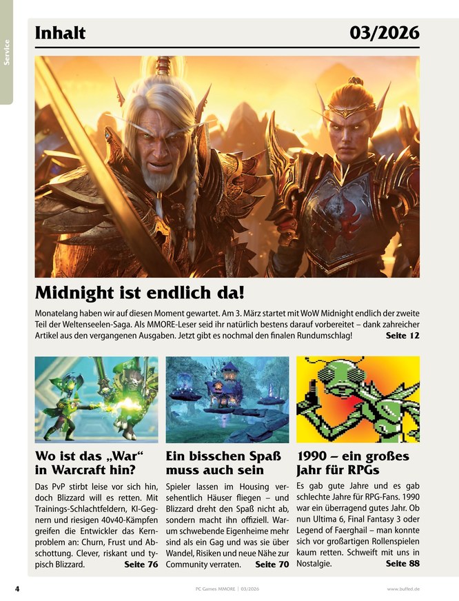 World of Warcraft-Fans aufgepasst: Im ePaper des einmaligen Gaming-Guides PC Games MMore dreht sich alles um das beliebte Multiplayer-Game WoW. Erfahren Sie das Neueste über Instanzen, Talente und Quests! Weiterlesen...