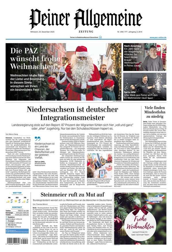 Von Montag bis Sonntag informiert die Peiner Allgemeine Zeitung über alles, was in und um Peine herum wichtig ist. Das ePaper der lokalen Tageszeitung beinhaltet alle relevanten Nachrichten aus den Ressorts Politik, Wirtschaft, Kultur und Sport. Lesen Sie die PAZ digital im iKiosk und verpassen Sie keine Ausgabe!