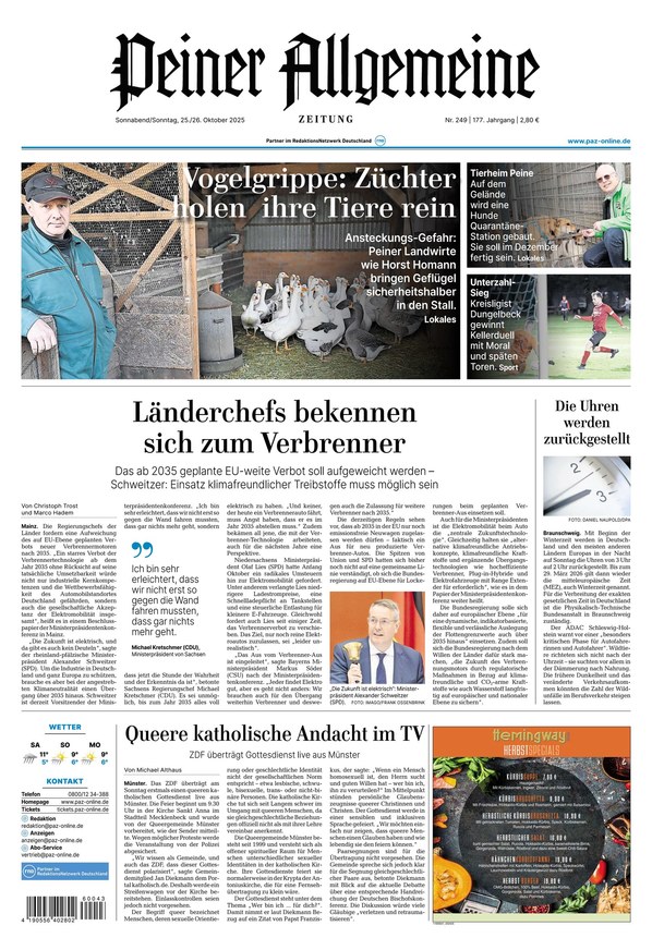 Von Montag bis Sonntag informiert die Peiner Allgemeine Zeitung über alles, was in und um Peine herum wichtig ist. Das ePaper der lokalen Tageszeitung beinhaltet alle relevanten Nachrichten aus den Ressorts Politik, Wirtschaft, Kultur und Sport. Lesen Sie die PAZ digital im iKiosk und verpassen Sie keine Ausgabe!