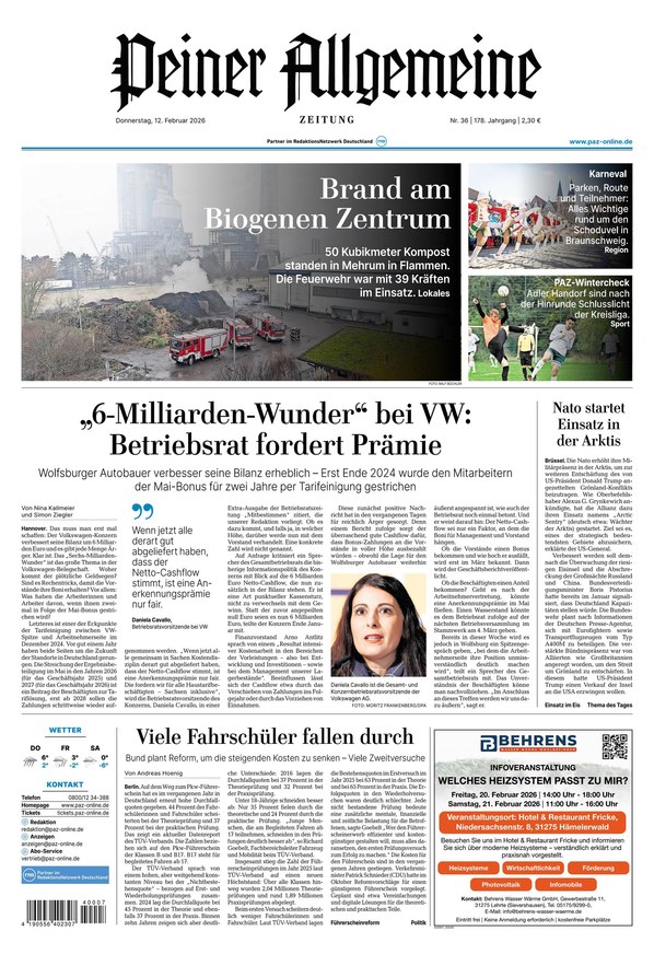 Lokale Nachrichten aus Peine und Umgebung, nationale News und Interessantes aus aller Welt: Das ePaper der Peiner Allgemeinen Zeitung hält Sie über alle wichtigen Themen auf dem Laufenden. Weiterlesen...