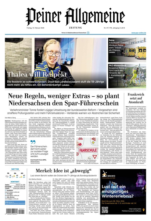 Von Montag bis Sonntag informiert die Peiner Allgemeine Zeitung über alles, was in und um Peine herum wichtig ist. Das ePaper der lokalen Tageszeitung beinhaltet alle relevanten Nachrichten aus den Ressorts Politik, Wirtschaft, Kultur und Sport. Lesen Sie die PAZ digital im iKiosk und verpassen Sie keine Ausgabe!