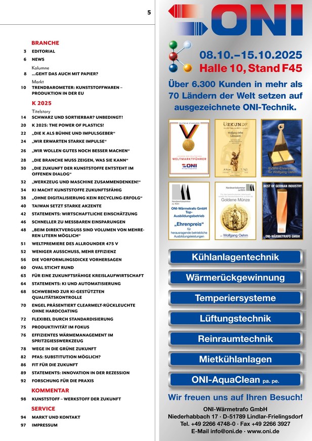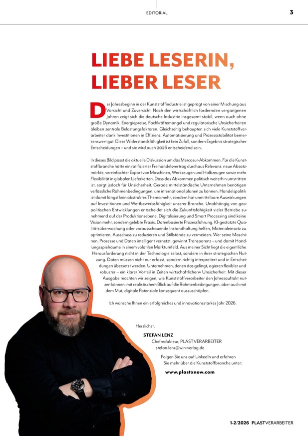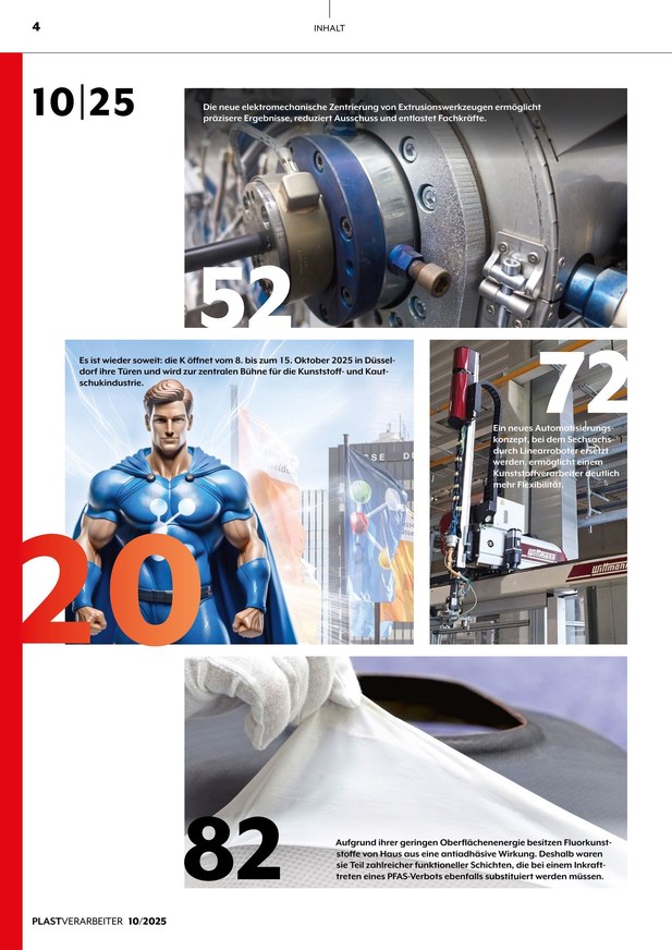 PLASTVERARBEITER, das Entscheidermagazin für effizientes Produzieren und erhöhte Marktchancen in der Kunststoff verarbeitenden Industrie, liefert Fachinformationen aus der Praxis. Der PLASTVERARBEITER unterstützt Kunststoffverarbeiter in Zeiten steigenden Kostendrucks und zunehmender Globalisierung, kosten- und ressourceneffizient zu produzieren, sowie neue Marktchancen frühzeitig zu erkennen. Vorgestellt werden innovative Produkte und Fertigungsstrategien. Im Fokus stehen konkrete Problemstellungen aus der Praxis.