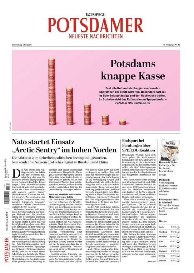 Wenn Sie täglich über die neuesten Geschehnisse informiert sein wollen, dann sind die Potsdamer Neueste Nachrichten PNN die richtige Wahl. Neben wichtigen regionalen Berichten über die Landeshauptstadt Potsdam und das Land Brandenburg wird in Kooperation mit dem Tagesspiegel auch über nationale und internationale Themen berichtet. Die Potsdamer Neueste Nachrichten greifen bei Ihren Recherchen auf ein weltweit einmaliges Expertenteam zurück. Eine fundierte Berichterstattung zu allen Bereichen (Politik, Verkehr, Bau, Gesundheit uvm.) ist der Anspruch, dem die Potsdamer Neueste Nachrichten seit 1951 gerecht werden.