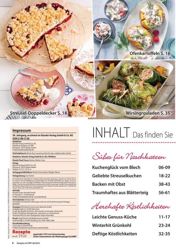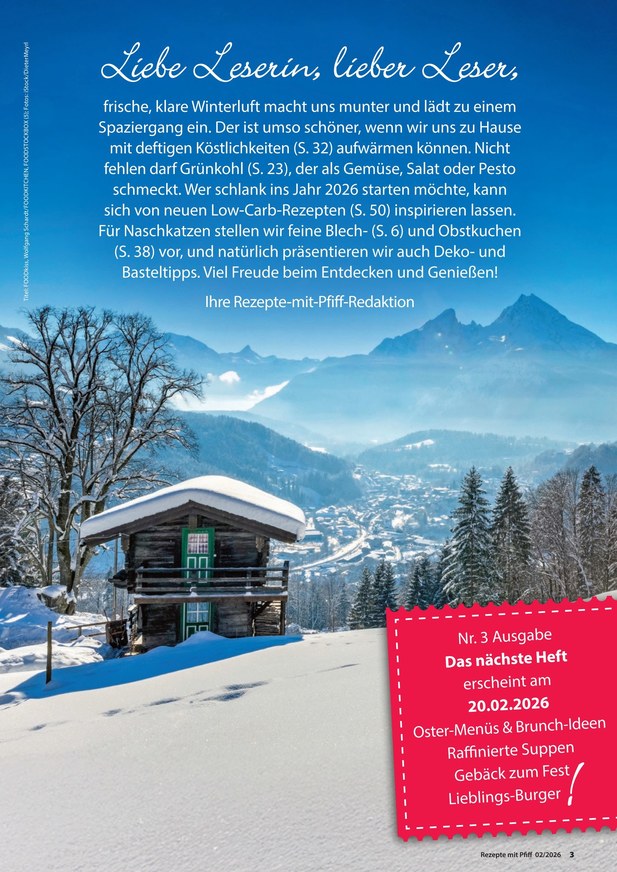 Und für wen kochen Frauen am meisten? Richtig, für ihre Lieben! Lecker soll es sein, einfach, schnell und preiswert für jeden Tag. Aber auch für die besonderen Anlässe im Leben finden sich in Rezepte mit Pfiff Monat für Monat jede Menge Ideen und Anregungen.