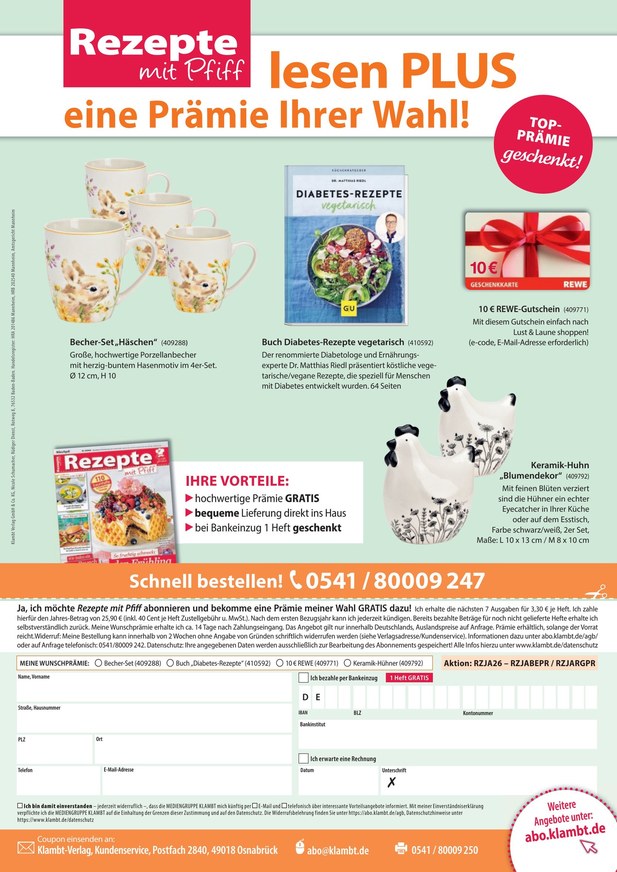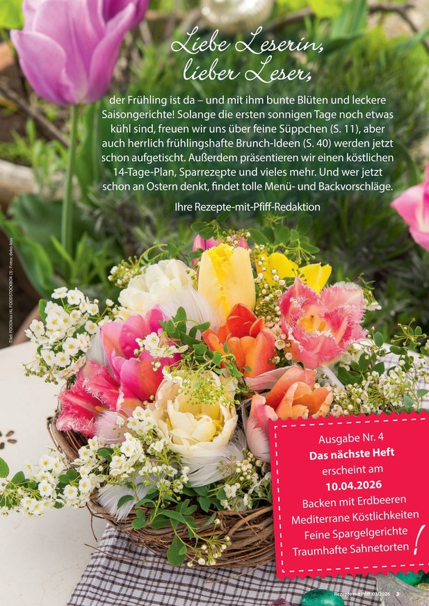 Und für wen kochen Frauen am meisten? Richtig, für ihre Lieben! Lecker soll es sein, einfach, schnell und preiswert für jeden Tag. Aber auch für die besonderen Anlässe im Leben finden sich in Rezepte mit Pfiff Monat für Monat jede Menge Ideen und Anregungen.