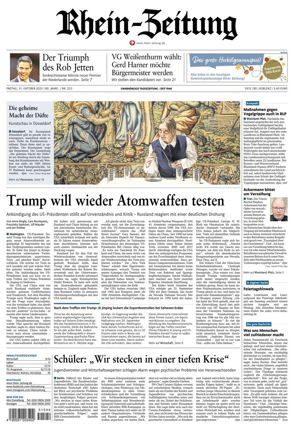 Über alles Wichtige in der Region Koblenz und darüber hinaus berichtet die Rhein-Zeitung von Montag bis Samstag. Die Regionalzeitung aus Rheinland-Pfalz ist nicht nur als ePaper erhältlich, sondern war tatsächlich weltweit Vorreiter in Sachen ePaper, als sie 2001 eine erste digitale Version des Blattes online zur Verfügung stellte.