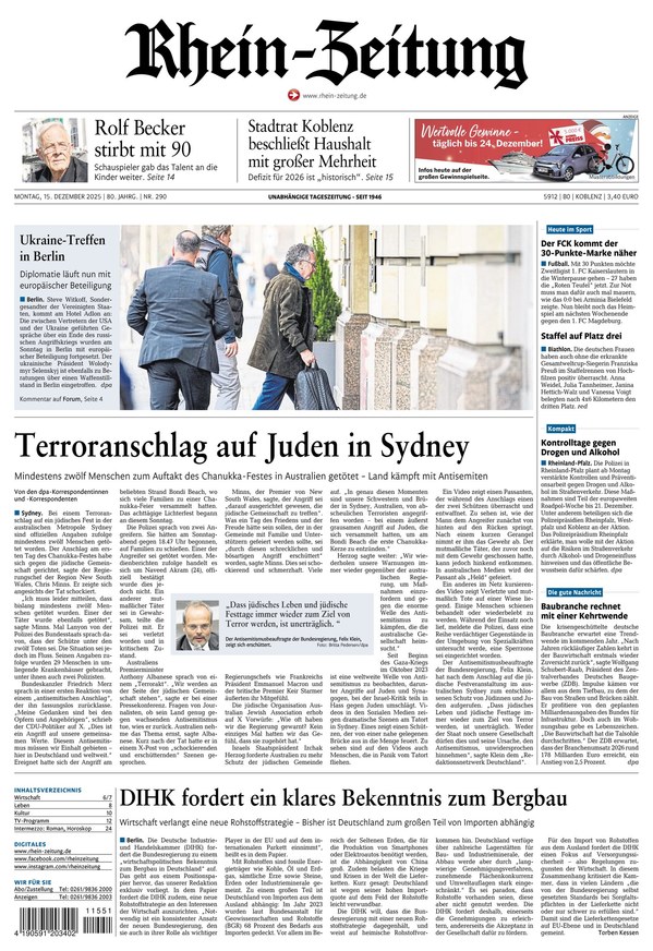 Lesen Sie in der Rhein-Zeitung Nachrichten aus Deutschland und der Welt. Von Politik und Wirtschaft über Sport bis zu wissenschaftlichen Themen finden Sie alle aktuellen News im ePaper der Zeitung. Weiterlesen...