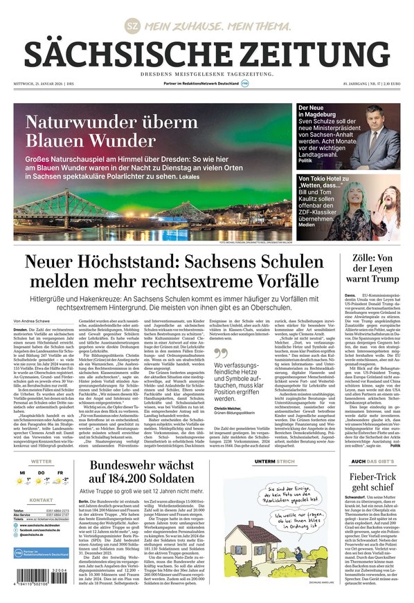Immer bestens informiert – mit der Sächsischen Zeitung im iKiosk. Ob Politik, Wirtschaft, Kultur oder Sport: Die Sächsische Zeitung bringt täglich alle wichtigen Nachrichten aus Dresden und Umgebung direkt auf Ihr Display. Klar, nah dran und auf den Punkt. Weiterlesen...