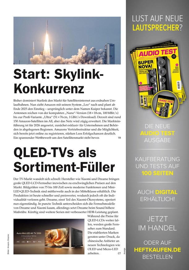 Was sind die besten Einstiegsboxen für den Sat-Empfang, wie funktioniert ein Sat-IP-Schalter und mit welchen Mitteln rüste ich meine Empfangsanlage um? Im ePaper des Magazins Satellit Empfang + Technik nimmt die Redaktion für Sie jede Menge Technik unter die Lupe. Weiterlesen...