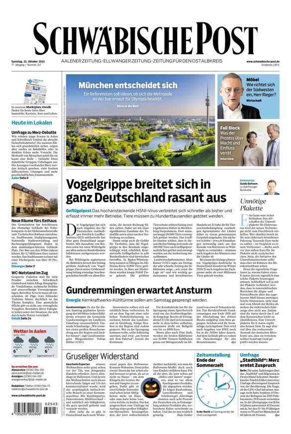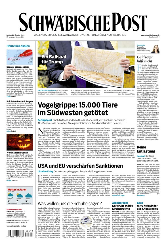 Die Schwäbische Post ist die Tageszeitung für Aalen, Ellwangen, Schwäbisch Gmünd und Umgebung. Das ePaper bietet aktuelle News aus der Region, Deutschland und der Welt. Weiterlesen...