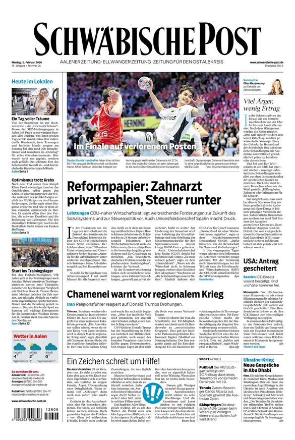Die Schwäbische Post ist die Tageszeitung für Aalen, Ellwangen, Schwäbisch Gmünd und Umgebung. Das ePaper bietet aktuelle News aus der Region, Deutschland und der Welt. Weiterlesen...