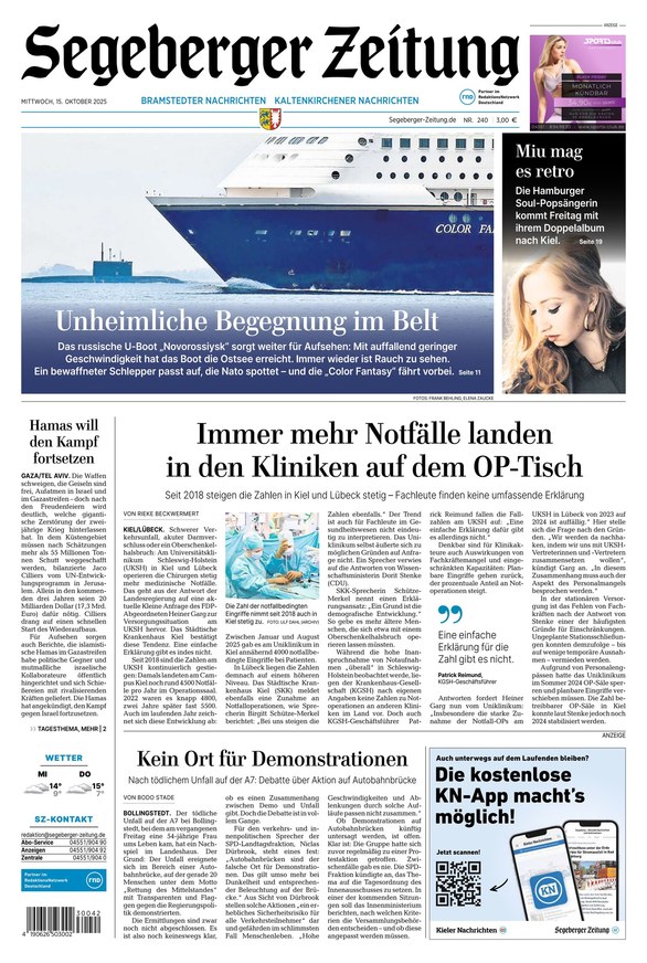 Die Segeberger Zeitung berichtet als Lokalzeitung vorwiegend über alle aktuellen Geschehnisse aus dem Kreis Segeberg in Schleswig-Holstein, informiert aber auch über überregionale Nachrichten. Weiterlesen...