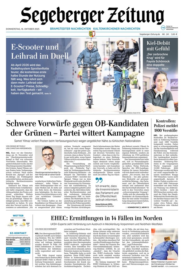 Die Segeberger Zeitung berichtet als Lokalzeitung vorwiegend über alle aktuellen Geschehnisse aus dem Kreis Segeberg in Schleswig-Holstein, informiert aber auch über überregionale Nachrichten. Weiterlesen...
