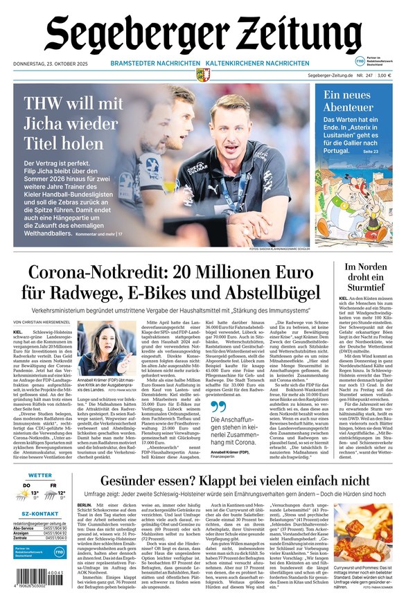 Die Segeberger Zeitung berichtet als Lokalzeitung vorwiegend über alle aktuellen Geschehnisse aus dem Kreis Segeberg in Schleswig-Holstein, informiert aber auch über überregionale Nachrichten. Weiterlesen...