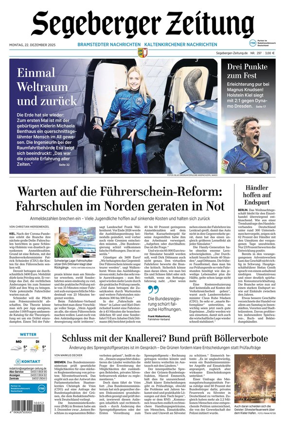 Die Segeberger Zeitung berichtet als Lokalzeitung vorwiegend über alle aktuellen Geschehnisse aus dem Kreis Segeberg in Schleswig-Holstein, informiert aber auch über überregionale Nachrichten. Weiterlesen...
