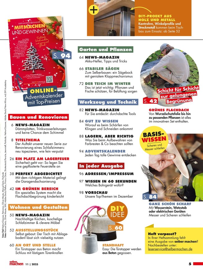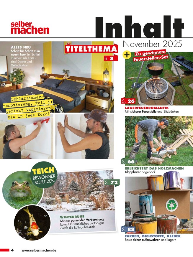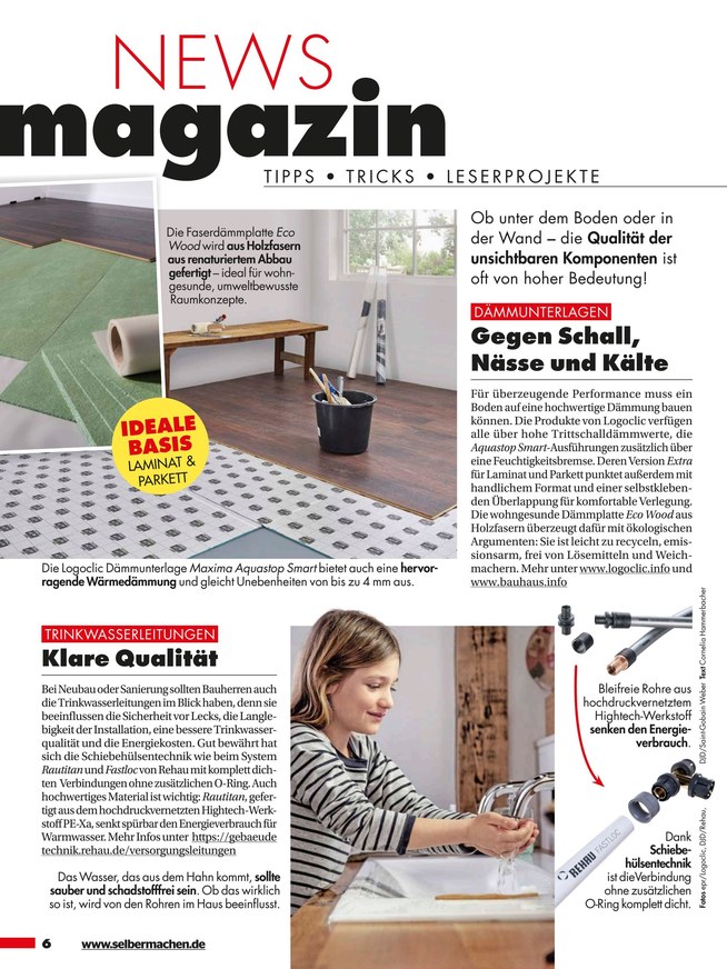Für alle, die gerne den Wohnzimmerboden abschleifen, die Badezimmerdecke neu machen, eigene Regalsysteme entwerfen und bauen oder im Garten mit Natursteinen Akzente setzen wollen, ist das Magazin SELBER MACHEN perfekt geeignet. Das ePaper für Handwerker, Bastler, Selbermacher und DIY-Enthusiasten erscheint monatlich, Sie können es auf dem Smartphone, Tablet oder am Computer lesen.