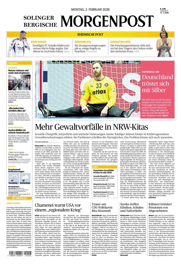 Lesen Sie die tagesaktuelle Ausgabe der Solinger Morgenpost pünktlich im iKiosk als ePaper. Sie haben eine Ausgabe verpasst oder möchten ein bestimmtes Datum nachschlagen? Dann werfen Sie einfach einen Blick in unser Archiv.