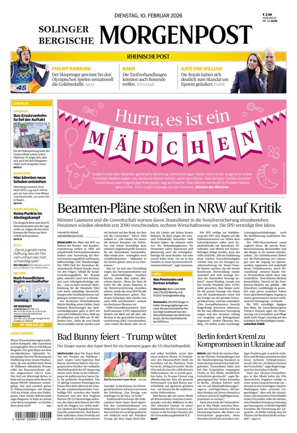 Die Solinger Morgenpost ist ein Teil der Rheinischen Post und konzentriert sich auf die Berichterstattung aus dem Land Nordrhein-Westfalen, bringt aber auch nationale und internationale Meldungen. Weiterlesen...