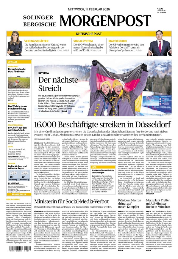 Die Solinger Morgenpost ist ein Teil der Rheinischen Post und konzentriert sich auf die Berichterstattung aus dem Land Nordrhein-Westfalen, bringt aber auch nationale und internationale Meldungen. Weiterlesen...