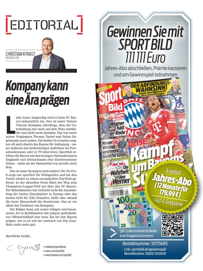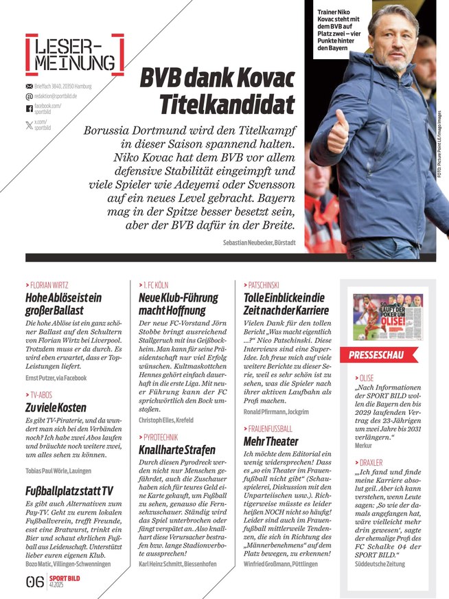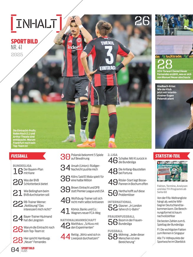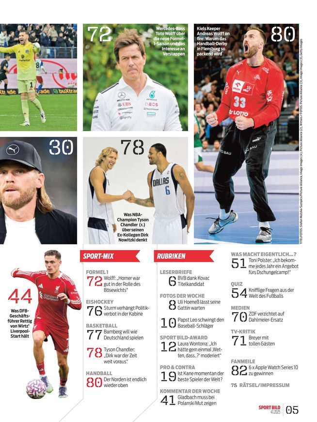 Die SPORT BILD, Europas Sportmagazin Nr. 1, berichtet über aktuelle Sportnachrichten rund um die Fußball-Bundesliga, Formel 1, Tennis und vieles mehr. Alle News finden Sie im ePaper der Zeitschrift Weiterlesen...
