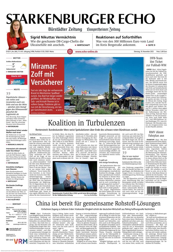 Das Starkenburger Echo ist Ihre traditionsreiche Informationsquelle, die mit umfassender Berichterstattung aus Heppenheim, Bensheim, Bürstadt, Lampertheim und Umgebung alle Facetten von aktuellen lokalen Nachrichten über politische Entwicklungen und Wirtschaftsthemen bis hin zu Kultur, Sport und gesellschaftlichen Ereignissen abdeckt.