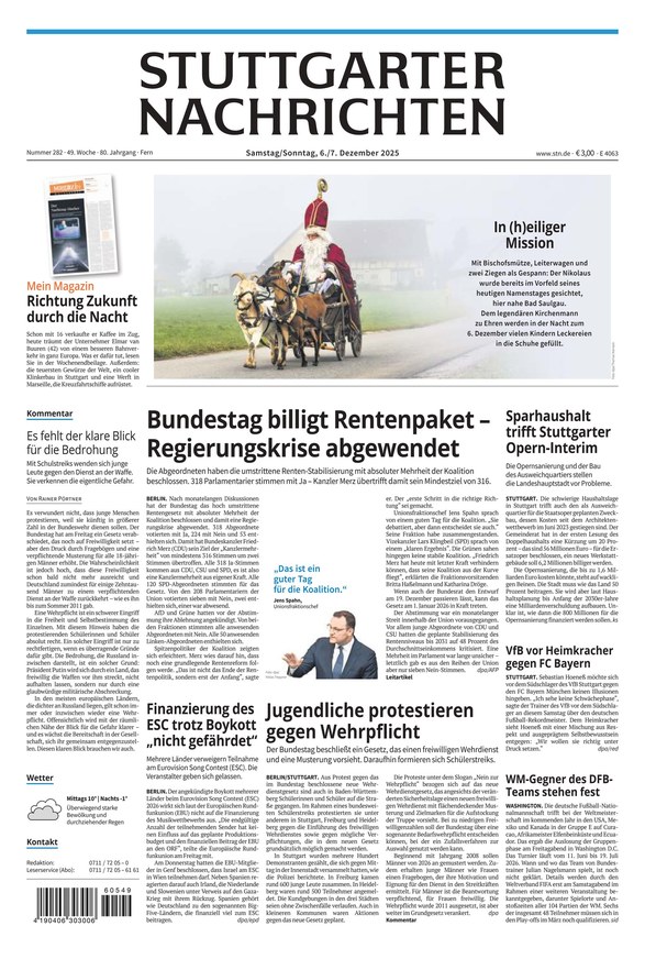 Die Stuttgarter Nachrichten umfassen diese und zahlreiche weitere Ressorts: