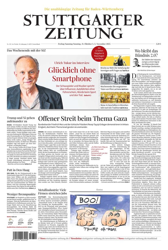 Alle Nachrichten aus Stuttgart und der Region erfahren Sie in der Stuttgarter Zeitung. Das ePaper setzt lokale Schwerpunkte, ist jedoch zusätzlich in der überregionalen Berichterstattung besonders stark. Weiterlesen...