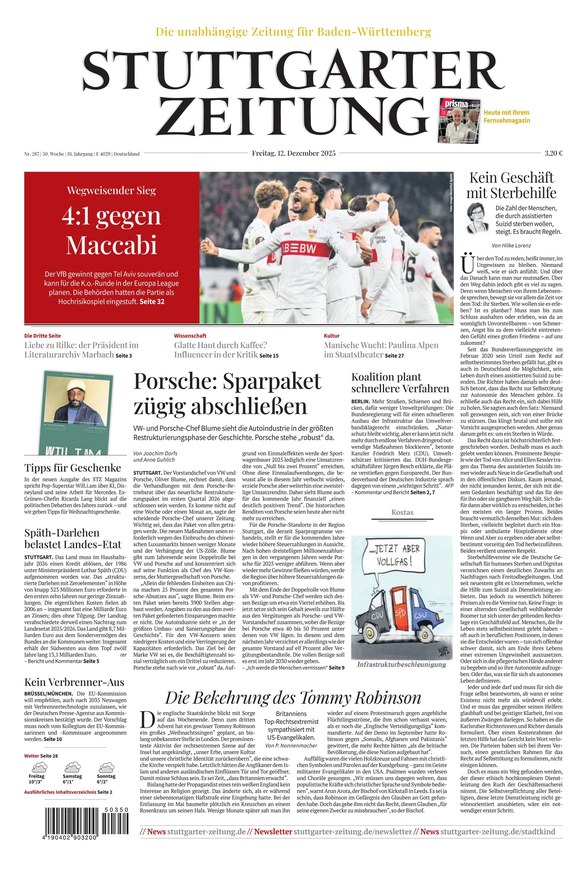 Alle Nachrichten aus Stuttgart und der Region erfahren Sie in der Stuttgarter Zeitung. Das ePaper setzt lokale Schwerpunkte, ist jedoch zusätzlich in der überregionalen Berichterstattung besonders stark. Weiterlesen...