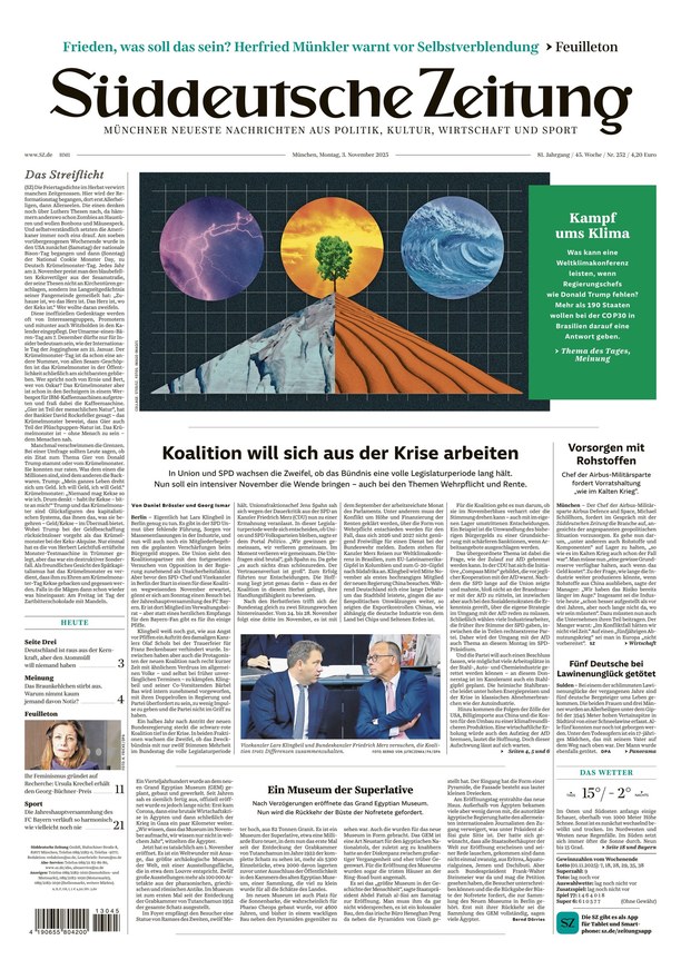 Die Süddeutsche Zeitung (SZ) liefert tagesaktuell Nachrichten und Hintergrundberichte aus Politik, Wirtschaft, Sport und Kultur. Das ePaper der Tageszeitung informiert Sie über alle relevanten News. Mit der Beilage des SZ Magazins am Freitag! Weiterlesen...
