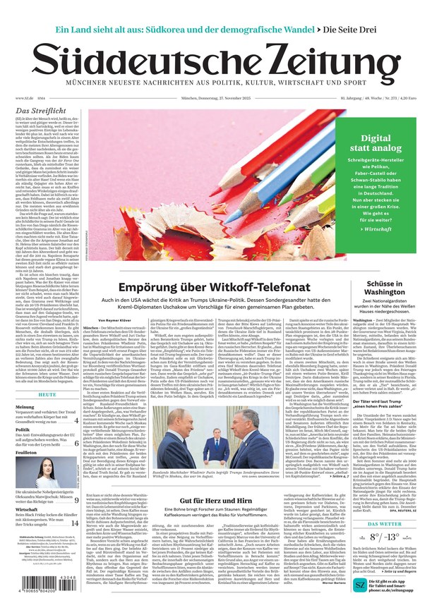 Die Süddeutsche Zeitung (SZ) liefert tagesaktuell Nachrichten und Hintergrundberichte aus Politik, Wirtschaft, Sport und Kultur. Das ePaper der Tageszeitung informiert Sie über alle relevanten News. Mit der Beilage des SZ Magazins am Freitag! Weiterlesen...