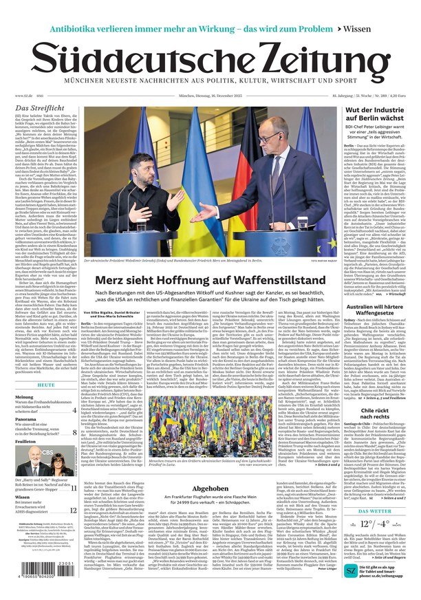 Die Süddeutsche Zeitung (SZ) liefert tagesaktuell Nachrichten und Hintergrundberichte aus Politik, Wirtschaft, Sport und Kultur. Das ePaper der Tageszeitung informiert Sie über alle relevanten News. Mit der Beilage des SZ Magazins am Freitag! Weiterlesen...
