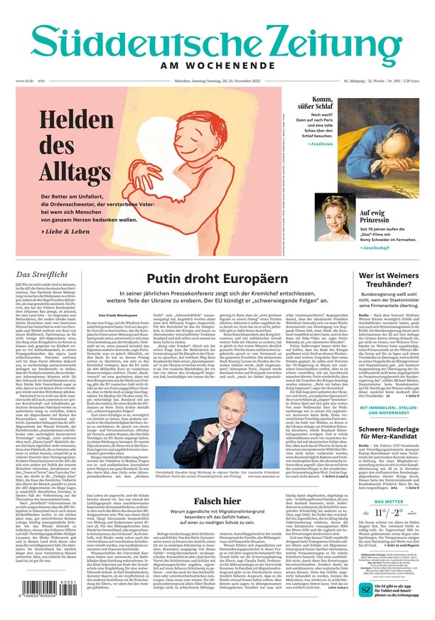 Die Süddeutsche Zeitung (SZ) liefert tagesaktuell Nachrichten und Hintergrundberichte aus Politik, Wirtschaft, Sport und Kultur. Das ePaper der Tageszeitung informiert Sie über alle relevanten News. Mit der Beilage des SZ Magazins am Freitag! Weiterlesen...