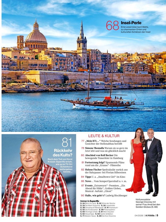 Lesen Sie die neuesten Schlagzeilen, Neuigkeiten und Skandale aus dem nationalen und internationalen Raum in der aktuellen Ausgabe der SUPERillu. Als praktisches ePaper finden Sie die SUPERillu hier im iKiosk und können das Magazin ganz bequem auf Ihrem Endgerät lesen. Selbstverständlich sind alle Inhalte der regulären Printausgabe enthalten, zusätzlich können sie auf viele hilfreiche Vorteile zurückgreifen - darunter eine Volltextsuche oder eine Zoomfunktion. Bei Interesse finden Sie in unserem Archiv außerdem zahlreiche ältere Ausgaben der SUPERillu.