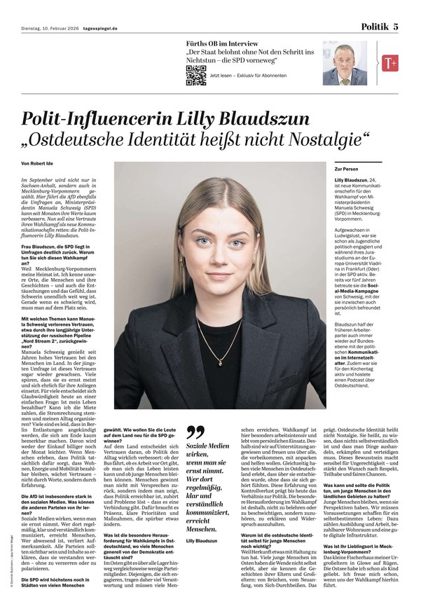 Der Tagesspiegel ist eine Tageszeitung, die seit 1945 im Tagesspiegel Verlag erscheint. Die Redaktion berichtet zu den Themen Politik, Wirtschaft, Sport und Kultur – direkt aus Berlin. Diese Tageszeitung können Sie als Einzel-, Monats- oder Jahresabonnement im iKiosk erwerben, direkt online lesen und auch als PDF herunterladen. Weiterlesen...