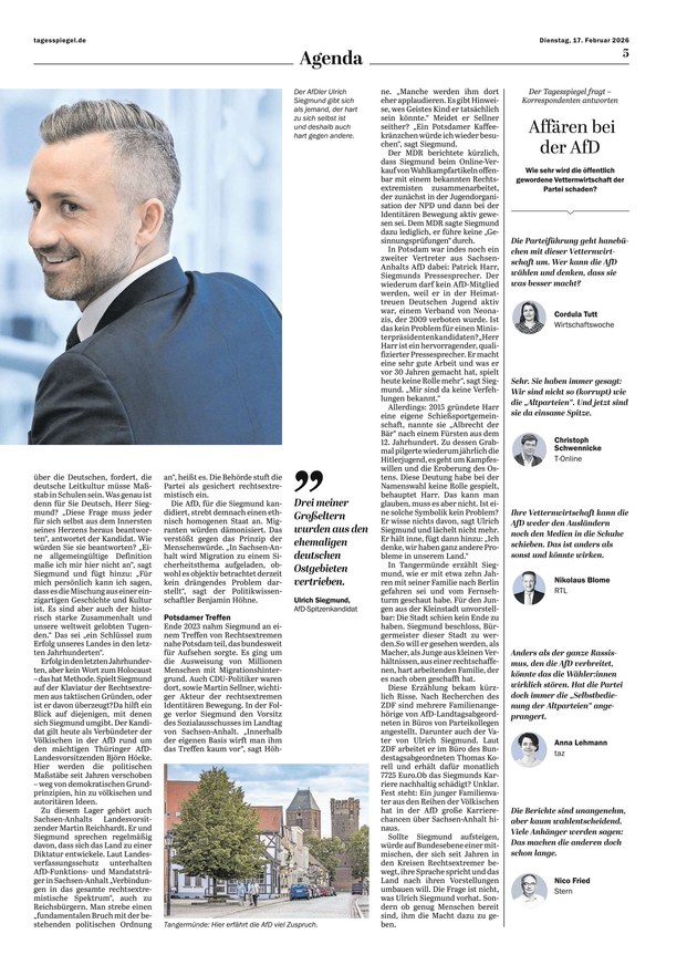 Mit der Rubrik „Fragen des Tages“ werden Lesende über aktuelle Fakten informiert, es folgt klassisch die Seite Drei, auf der sich die Redaktion ausführlich mit verschiedenen Themenbereichen auseinandersetzt. Von Lifestyle über Geographie bis Politik ist alles dabei. Dank dieser Vielfalt bietet der Tagesspiegel eine Quelle für Neugierige aller Lebensbereiche.