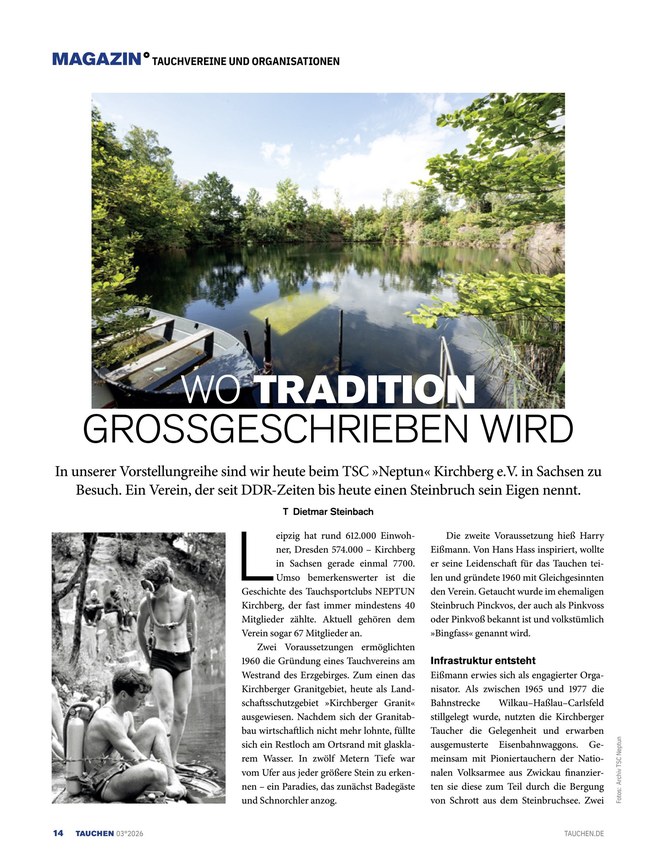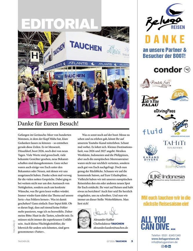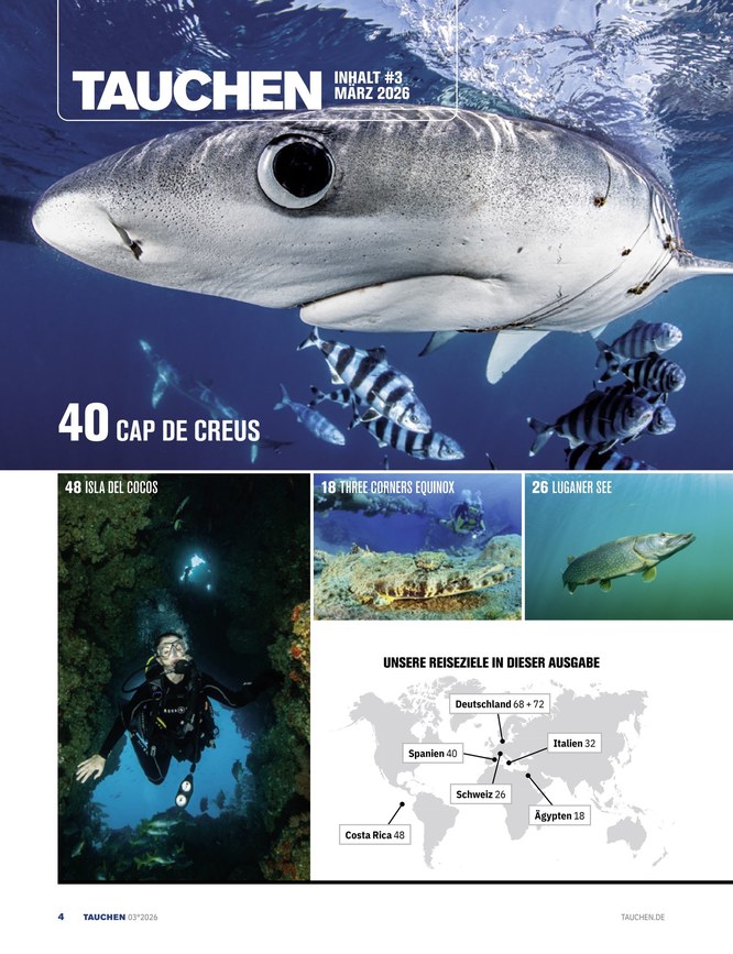 Das Magazin TAUCHEN begeistert mit Reise-Reportagen, Praxis-Tests und eindrucksvollen Fotostrecken. Erfahren Sie im ePaper alle News und Trends rund um das Thema Tauchen. Weiterlesen...