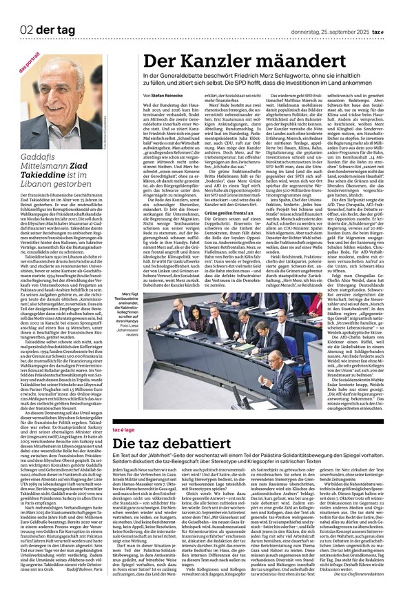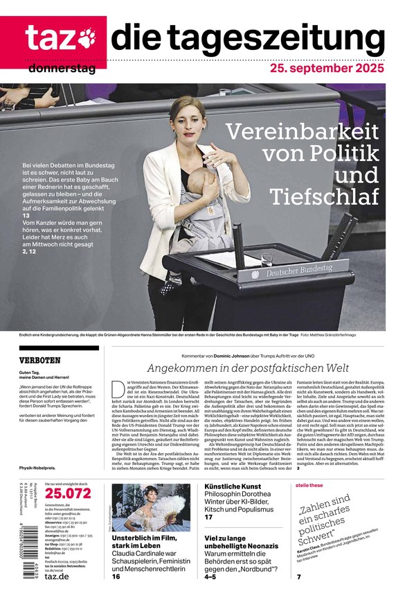 Von Politik über Wirtschaft und Gesellschaft bis hin zum Sport - taz die tageszeitung informiert Sie im ePaper über aktuelle Themen aus Deutschland und der ganzen Welt. Weiterlesen...