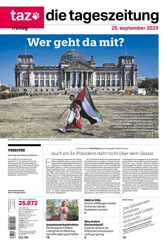 Von Politik über Wirtschaft und Gesellschaft bis hin zum Sport - taz die tageszeitung informiert Sie im ePaper über aktuelle Themen aus Deutschland und der ganzen Welt. Weiterlesen...