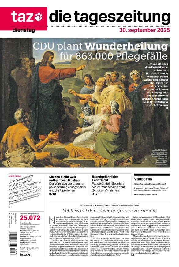 Von Politik über Wirtschaft und Gesellschaft bis hin zum Sport - taz die tageszeitung informiert Sie im ePaper über aktuelle Themen aus Deutschland und der ganzen Welt. Weiterlesen...