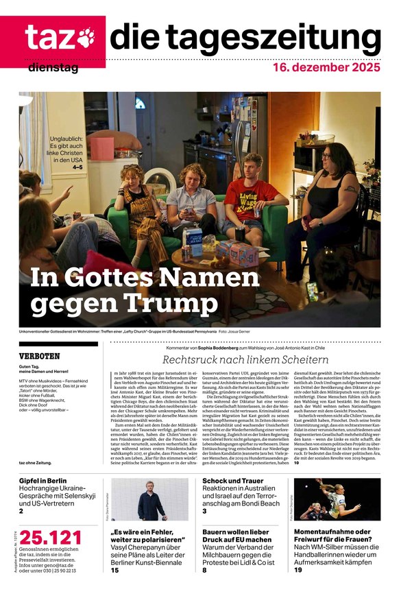 Von Politik über Wirtschaft und Gesellschaft bis hin zum Sport - taz die tageszeitung informiert Sie im ePaper über aktuelle Themen aus Deutschland und der ganzen Welt. Weiterlesen...
