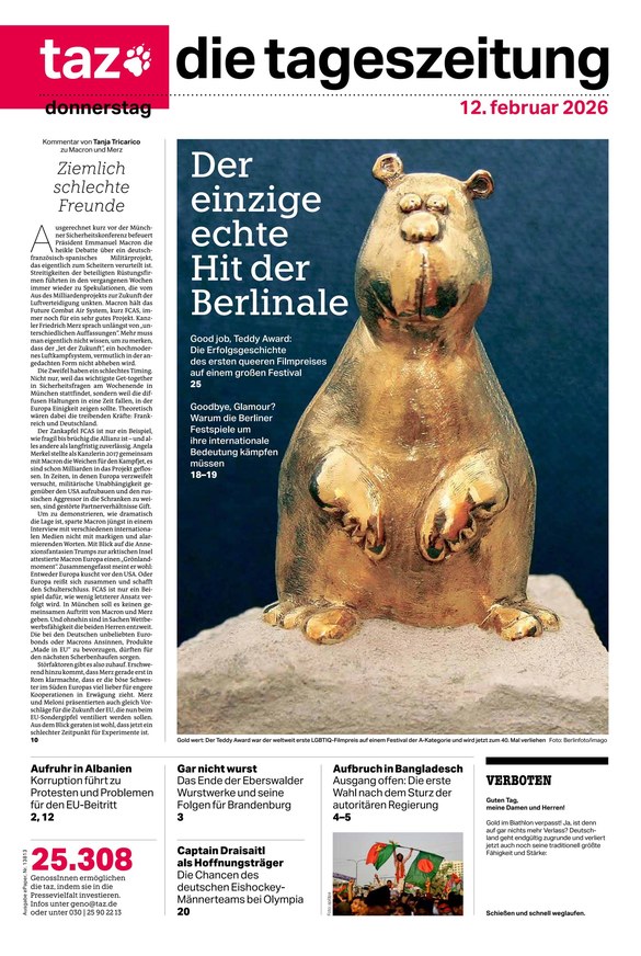 Von Politik über Wirtschaft und Gesellschaft bis hin zum Sport - taz die tageszeitung informiert Sie im ePaper über aktuelle Themen aus Deutschland und der ganzen Welt. Weiterlesen...