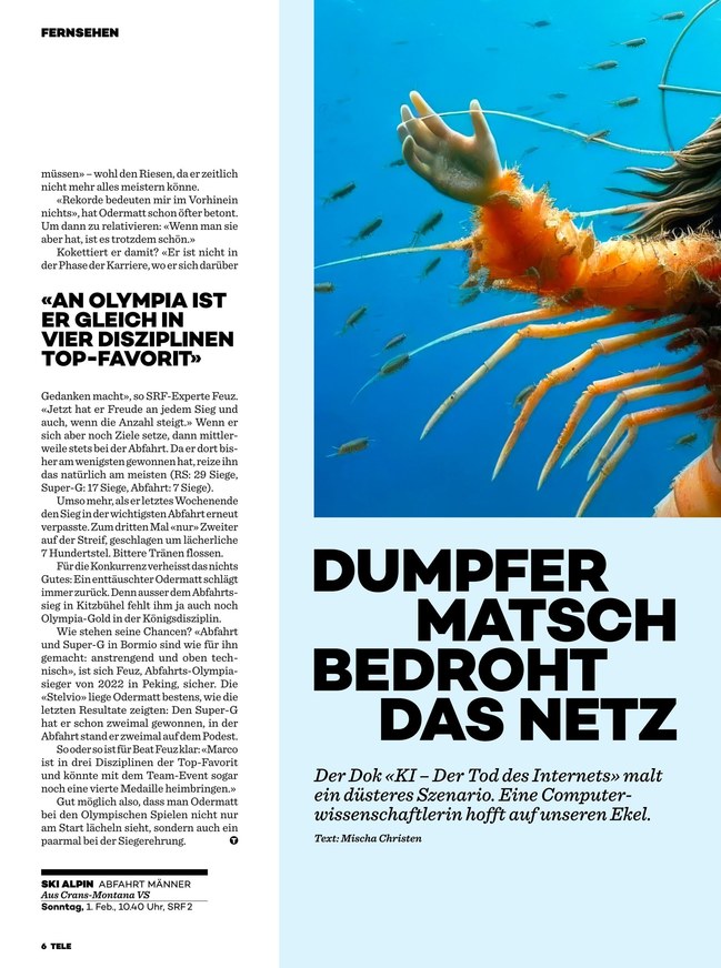 TELE ist das TV-Magazin der Schweiz. Das ePaper informiert über das aktuelle TV-Programm und berichtet über aktuelle Themen aus Bereichen wie Unterhaltung, Kino und Reise. Weiterlesen...