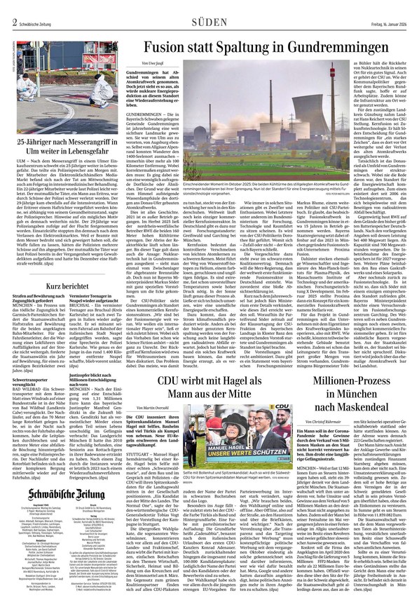 Die Trossinger Zeitung berichtet als lokale Tageszeitung täglich über alle Themen, die in der Region und darüber hinaus wichtig sind. Bleiben Sie mit dem ePaper über alle Nachrichten aus dem Süden informiert. Weiterlesen...
