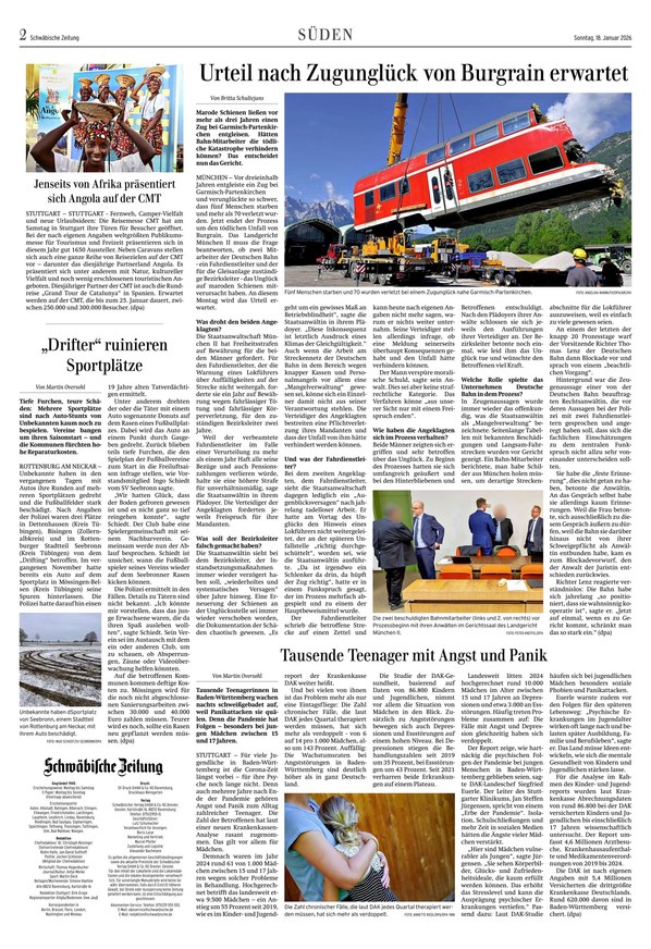 In der Wochenendbeilage finden Sie zudem Infos und Nachrichten aus den Bereichen Menschen, Lebensart, Unterhaltung, Immobilien, Jobs, sowie Auto & Verkehr. Herausgegeben wird die Trossinger Zeitung von der Schwäbischer Verlag GmbH & Co. KG Drexler, Gessler.