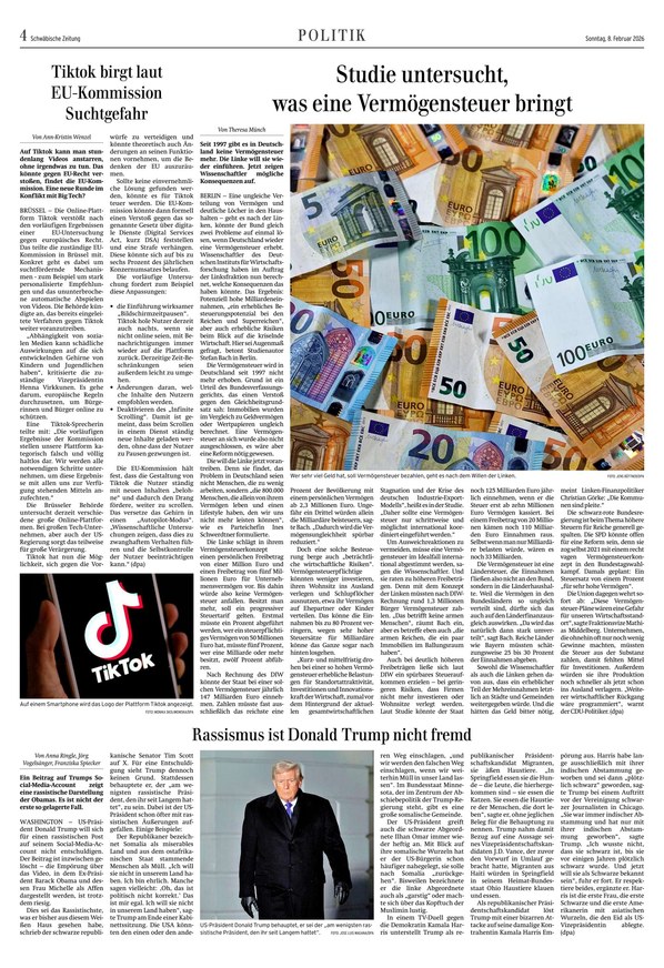 In der Wochenendbeilage finden Sie zudem Infos und Nachrichten aus den Bereichen Menschen, Lebensart, Unterhaltung, Immobilien, Jobs, sowie Auto & Verkehr. Herausgegeben wird die Trossinger Zeitung von der Schwäbischer Verlag GmbH & Co. KG Drexler, Gessler.