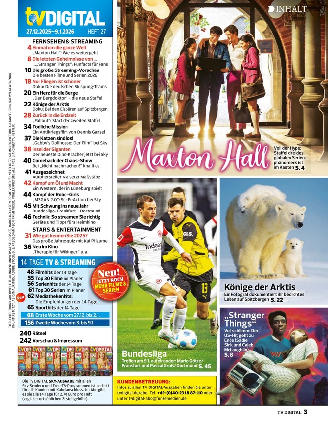 Weitaus mehr als nur das aktuelle Fernsehprogramm finden Sie in TV DIGITAL. Das ePaper der Zeitschrift liefert Ihnen News rund um Musik, TV, Kino und Stars. Weiterlesen...