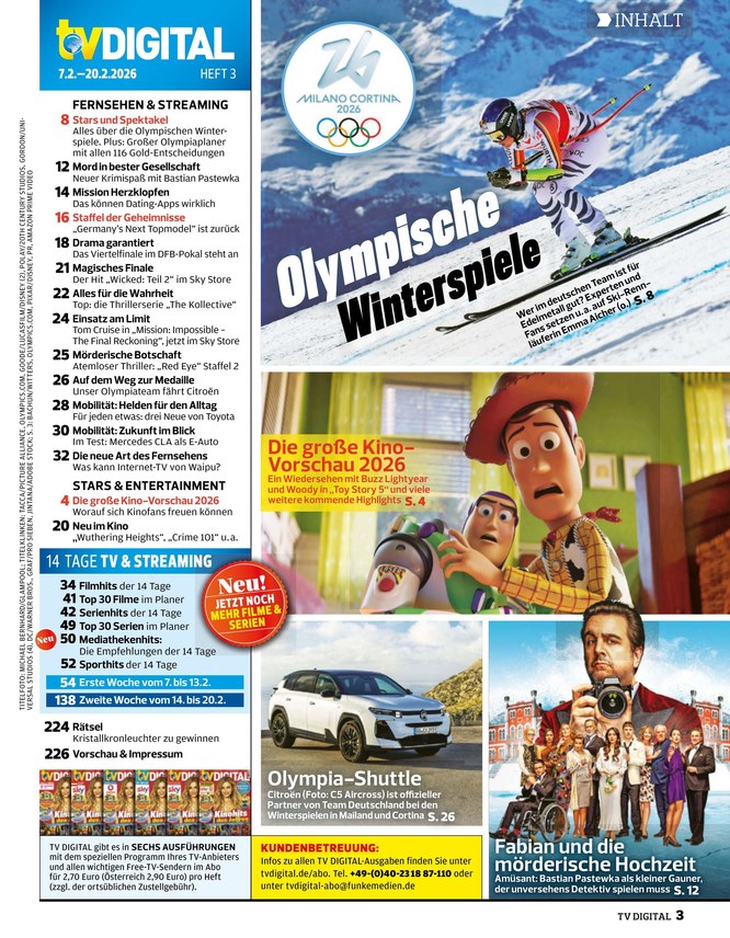 Sie wollen sich beim Fernsehen gezielt die schönsten Filme, Serien und Dokumentationen heraussuchen? Dann ist das ePaper von TV DIGITAL Kabel Deutschland perfekt für Sie! Neben einer umfangreichen Programm-Übersicht mit den Höhepunkten aus den Segmenten Spielfilm, Serie, Sport, Kinder, Show und Doku findet sich im ePaper auch ein Lesebereich mit exklusiven Interviews, aufwendigen Reportagen und umfassenden Features aus der Welt von Kino & TV-Entertainment.