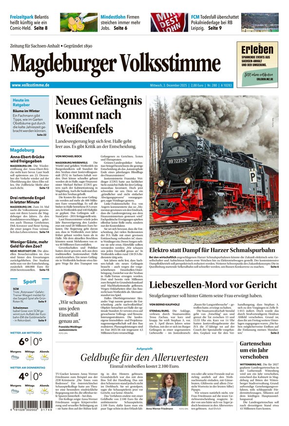 Als regionale Tageszeitung konzentriert sich die Volksstimme vor allem auf den Norden Sachsen-Anhalts. Tagesaktuelle Nachrichten aus Deutschland und der Welt ergänzen die regionale Berichterstattung. Neben Wirtschaftsnachrichten berichtet die Volksstimme über alle wichtigen politischen Entscheidungen. Ein kompetent recherchierter Ratgeberteil rundet das ePaper der Volksstimme ab – Leserinnen und Leser profitieren von fundierten Tipps rund um die Themen Gesundheit, Verbraucherschutz und Finanzen